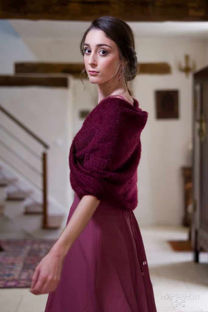 Etole mariage invité en maille, offrant à la fois chaleur et élégance dans un cocon douillet.